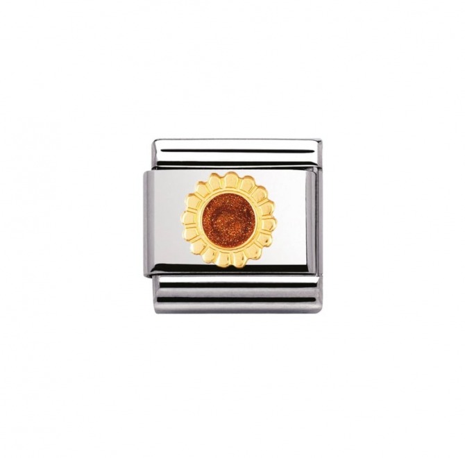 Composable classic stainless steel composable bracelet link with 18k gold, enamel Sunflower from Nomination.