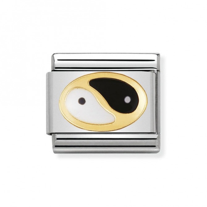 Original Charm for Composable Classic Nomination Bracelet with Tao symbol in stainless steel, bonded yellow gold and enamel. Made in Italy. Tell your story with Composable!