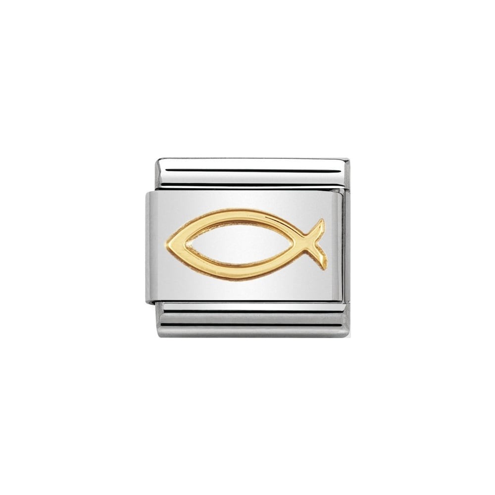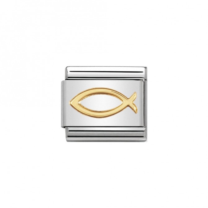 Nomination Original Charm for Classic Composable Bracelet with Religious Ichthus symbol in stainless steel and bonded yellow gold. Made in Italy. Choose your favourite religious symbol and tell your story with Composable!