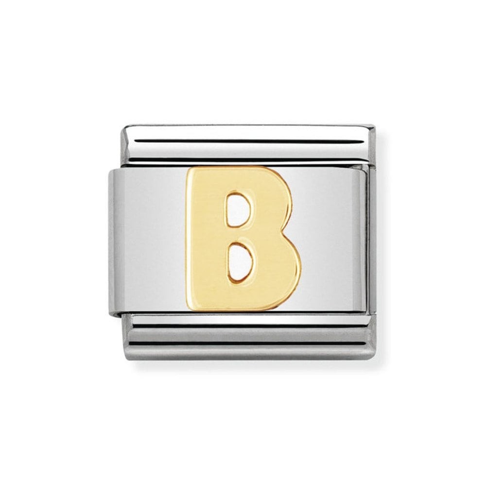 Original Alphabet Charm for Nomination's Composable Classic Bracelet with Letter B in stainless steel and bonded yellow gold. Available Charm versions: A-Z. Made in Italy. The perfect birthday gift.