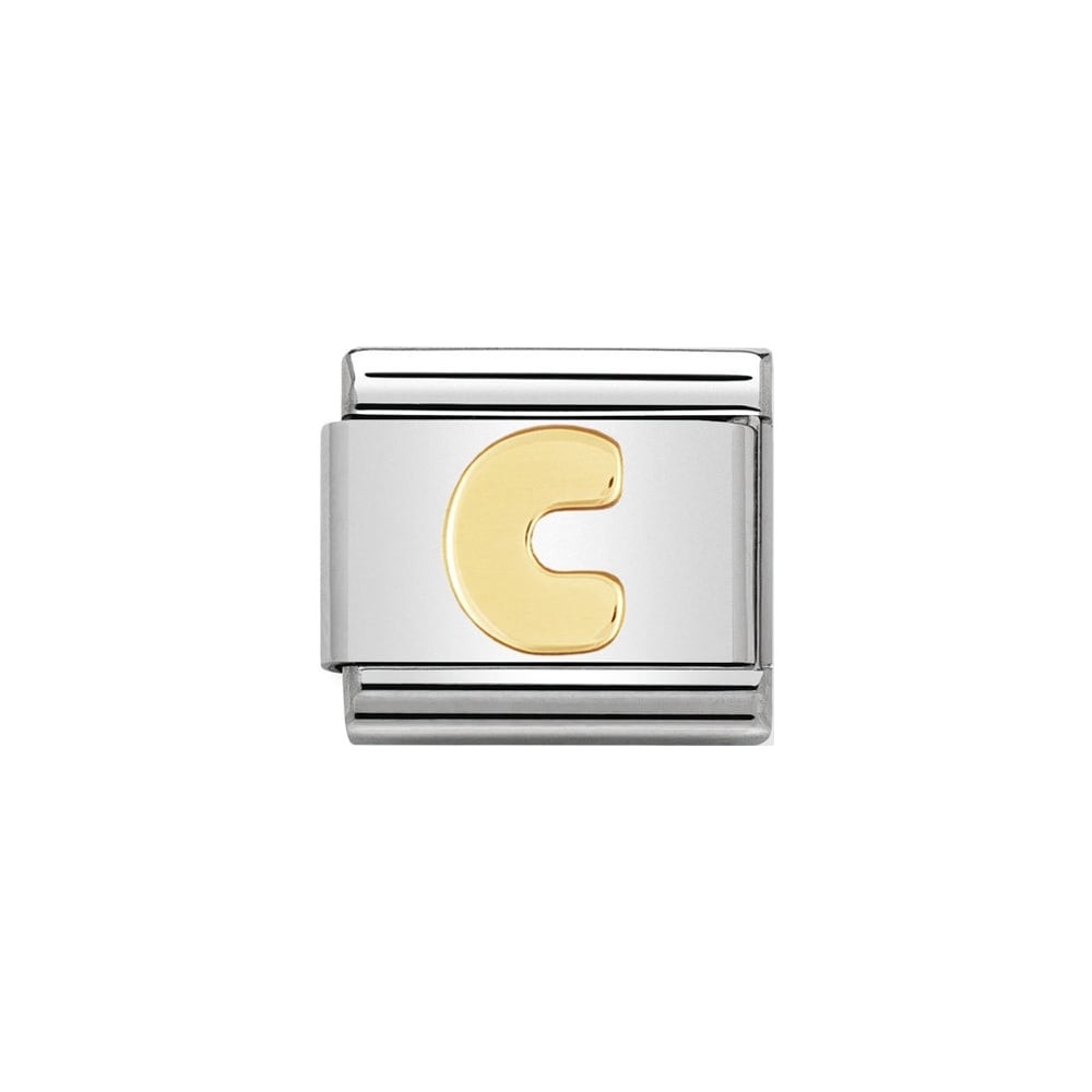 Nomination Original Charm for Composable Classic Bracelet with Alphabet Letter C in stainless steel and bonded yellow gold. Available Charm versions: A-Z. Made in Italy. Add your loved one's initials to your bracelet!