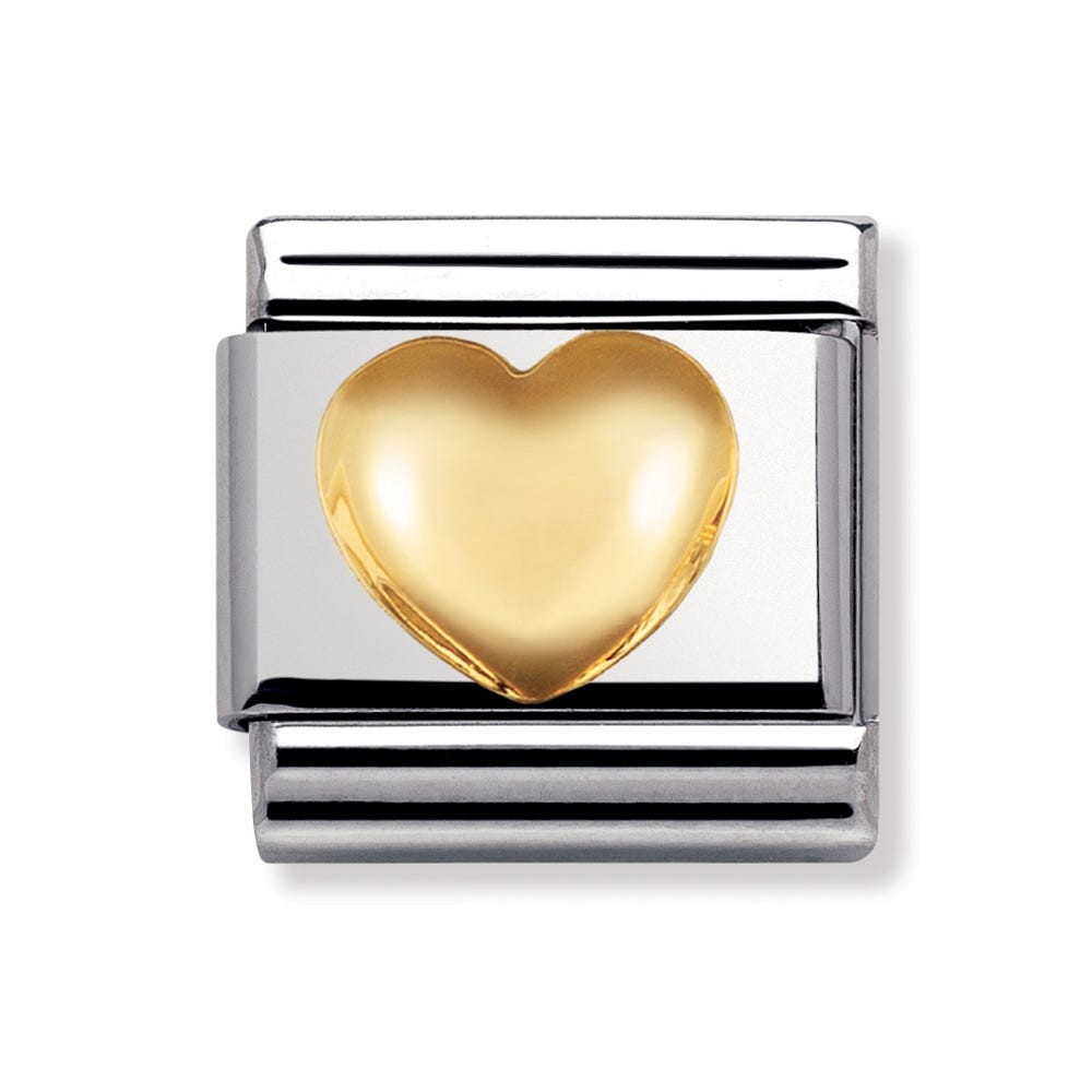 Original Charm for Nomination's Composable Classic Bracelet in stainless steel and bonded yellow gold with Raised heart. Made in Italy. The perfect gift for Valentine's Day.