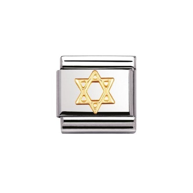 Nomination Original Charm for Classic Composable Bracelet with Religious Star of David symbol in stainless steel and bonded yellow gold. Made in Italy. Celebrate your spiritual side.