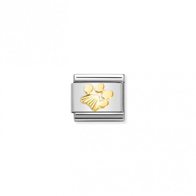 Original Nomination Classic Link in stainless steel and 18K yellow gold with Paw Print with Etched Detail. Made in Italy. A symbol with etched details to reflect light and enhance the brilliance of your jewellery.