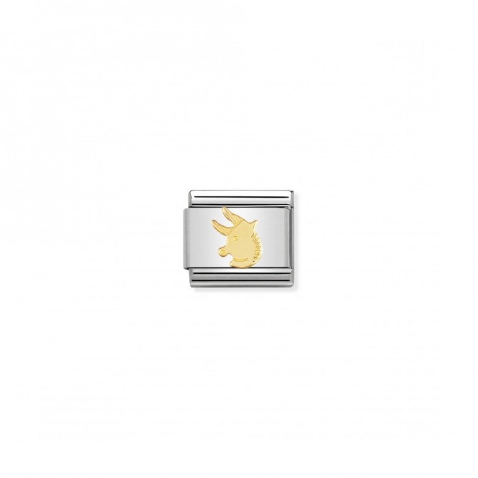 Original Zodiac Charm for Nomination's Composable Classic Bracelet with Taurus symbol in stainless steel and bonded yellow gold. All Zodiac symbols are available. Made in Italy. People born under Taurus have good taste and tend to be down to earth.