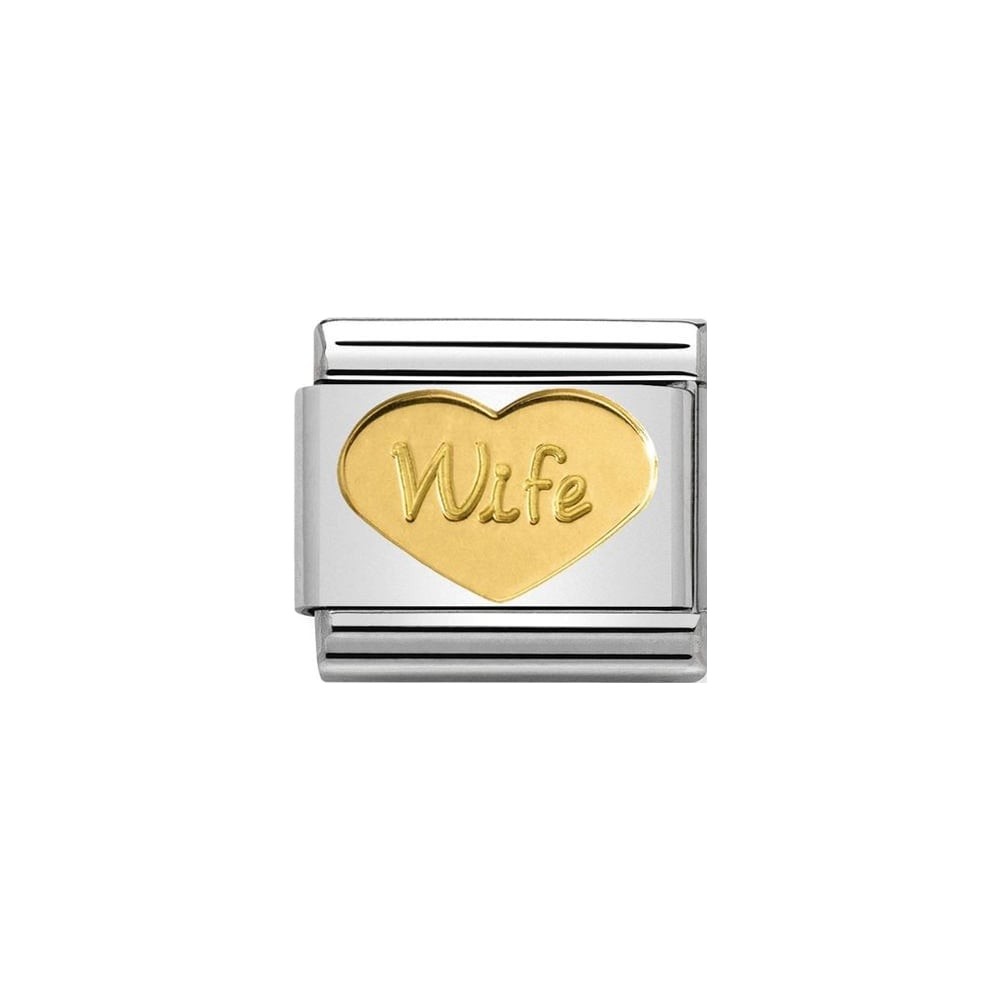 Original Composable Charm for the Classic size bracelet in stainless steel and bonded yellow gold. Inscription: Wife. Made in Italy. The perfect gift for your wife on your Wedding Anniversary or Valentine's Day.