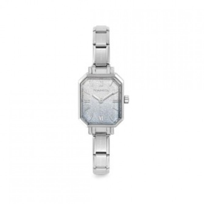 A lovely gradient blue glitter dial watch crafted in a rectangular stainless steel case, finished on the composable bracelet which is ideal for collecting the classic charms to suit you!