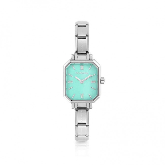 Stainless steel watch with white Cubic Zirconia. Band width: 0.8 cm. Stainless steel case and Turquoise Green dial with Roman numerals. Waterproof: 3 bars. Case size: 2.2 x 2.5 cm. You can personalise the watchband with original Composable Classic Links. Made in PRC Choose this on trend accessory that is perfect for every occasion.