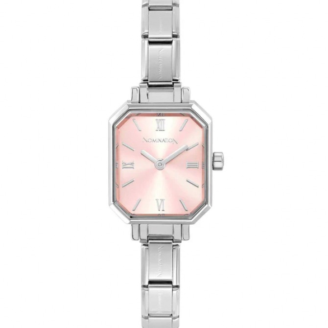 Watch with Composable Classic Bracelet (Charm height = 0,8 cm). Case in stainless steel and dial in Sunray stainless steel. Water resistant 3 bars. Case size: 2 x 2,5 cm. The watchstrap can be personalised with Original Composable Classic Charms. Available dials: mother of pearl, black, pink, and white. Time Collection. Made in P.R.C. Choose your favourite dial and flaunt your watch at all hours of the day or night!