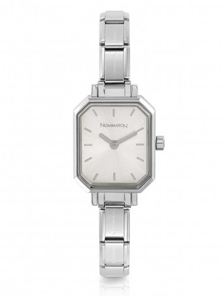 Watch with Composable Classic Bracelet (Charm height = 0,8 cm). Case in stainless steel and dial in Sunray stainless steel. Water resistant 3 bars. Case size: 2 x 2,5 cm. The watchstrap can be personalised with Original Composable Classic Charms. Available dials: mother of pearl, black, pink, and white. Time Collection. Made in P.R.C. Choose your favourite dial & flaunt your watch at all hours of the day or night!