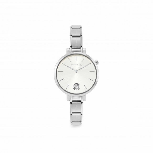 Composable Time Collection Watch in stainless steel with Sunray Silver finish clock face with Cubic Zirconia. Clock face diameter: 3.1 cm. The watchstrap can be personalised with Original Composable Classic Charms. Made in P.R.C. This watch is the perfect give & a guaranteed winner on any occasion.