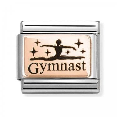 Original stainless steel Charm for Nomination's Composable Classic Bracelet with details in bonded 9ct rose gold and black enamel. Made in Italy. Show your love of gymnastics with a special Charm.
