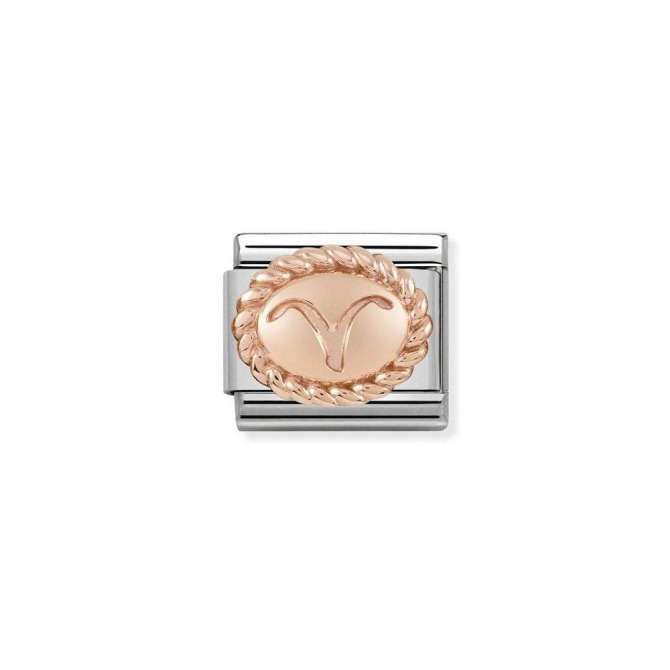 Original Charm for Nomination's Composable Classic bracelet in stainless steel and bonded 9ct rose gold with Aries zodiac symbol. Made in Italy. The new Composable line: discover all the Charms dedicated to the zodiac.