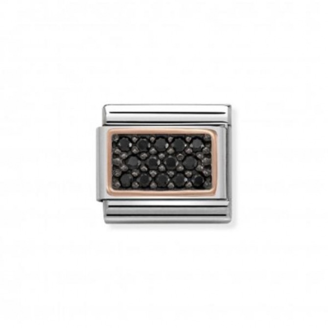 Original Nomination Charm in stainless steel with details in bonded 9ct rose gold and black Cubic Zirconia for the Composable bracelet. Made in Italy. If your style is rock, this is the perfect Charm to brighten up your days.