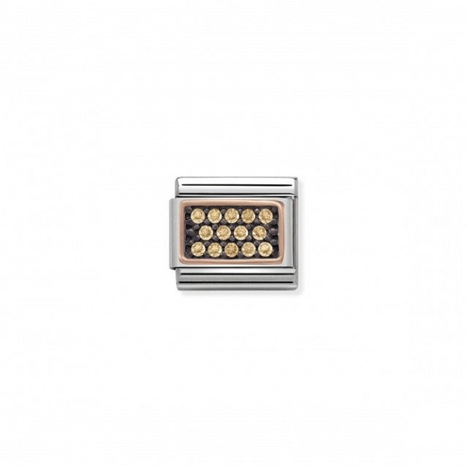 Original Nomination Charm in stainless steel with details in bonded 9ct rose gold and champagne Swarovski Zirconia for the Composable bracelet. Made in Italy. A precious detail for a bracelet that's up to you to create and make your own.