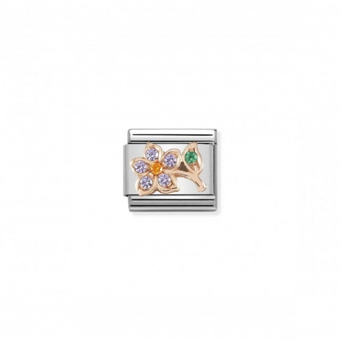 Original link for bracelet with Cubic Zirconia Lilac Flower with Stem symbol in bonded rose gold. Made in Italy. This link is for the bride who lives for romance and happy endings.