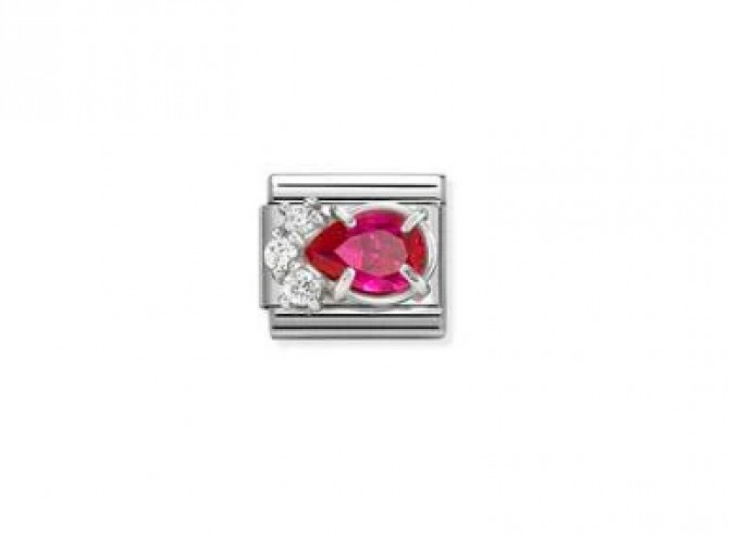 Original stainless steel Charm for Nomination's Composable Classic Bracelet. Details in sterling silver and faceted Red Cubic Zirconia. The Drop Charm is available in several colours. Made in Italy. Brighten up your look with a sparkly Charm.