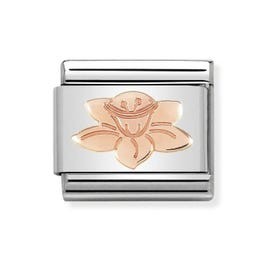 Original link for bracelet with Daffodil symbol in bonded rose gold. Made in Italy. Celebrate Cymru heritage and the Daffodil in Wales with this link.