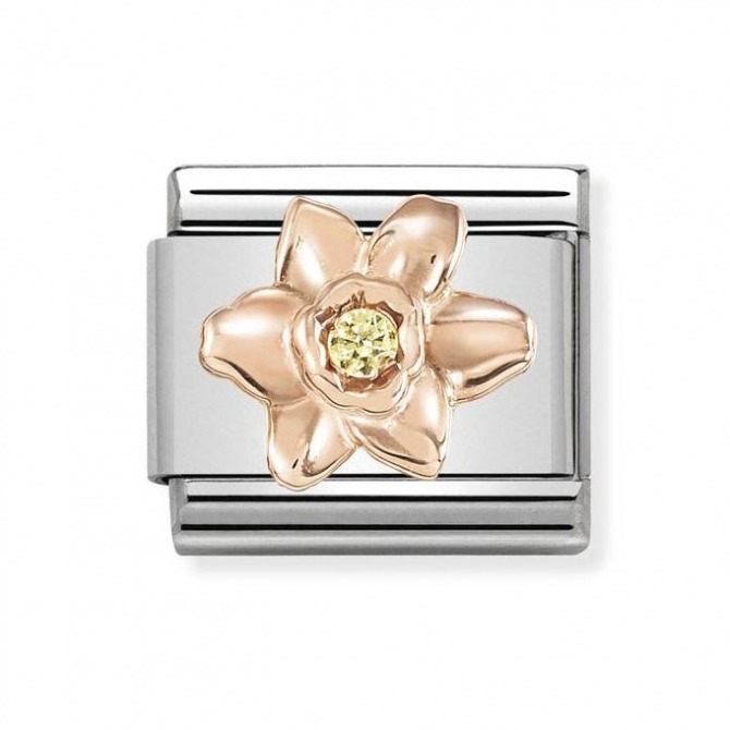 Original link for bracelet with Daffodil with Yellow Cubic Zirconia symbol in bonded rose gold. Made in Italy. Celebrate your Mum with a Daffodil that will bloom forever with this link.