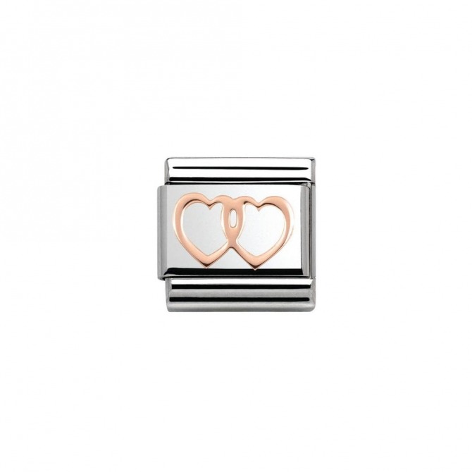 Original stainless steel Charm for Nomination's Composable Classic Bracelet with details in bonded rose gold. Made in Italy. “Our two hearts are connected by a strong bond.”