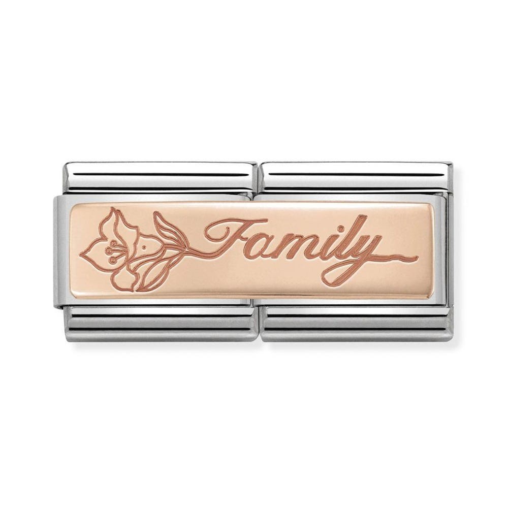 Original Double link for bracelet with plaque in bonded rose gold - FAMILY with Flower. Made in Italy. The double link that shows family means the most. A beautiful gift for Mother's Day.