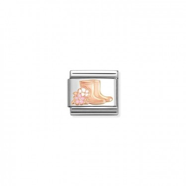 Original Double link for bracelet with plaque in bonded rose gold - SISTER with Flower. Made in Italy. The double link for when your Sister is your Best Friend.