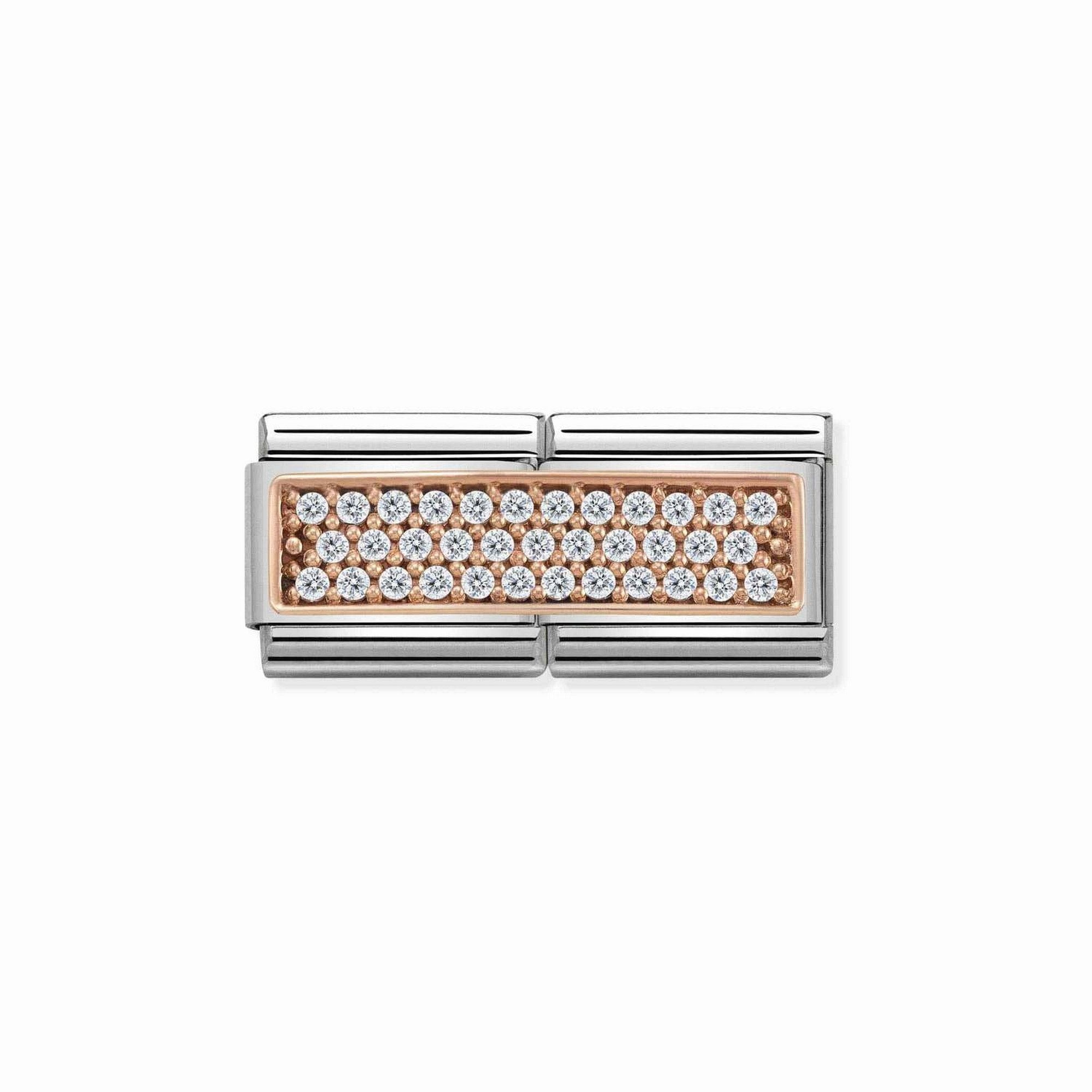 Original Nomination Double Charm in stainless steel, bonded rose gold and white Cubic Zirconia for the Composable bracelet. Made in Italy. The Double Charm, Nomination's latest innovation!