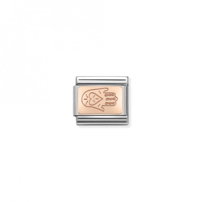 Original Nomination Link for Composable Classic Bracelets in Stainless steel with Hand of Fatima symbol in bonded rose gold. Made in Italy. The perfect Link to mix Link for the cool Guru in all of us who knows how to take life as it comes.