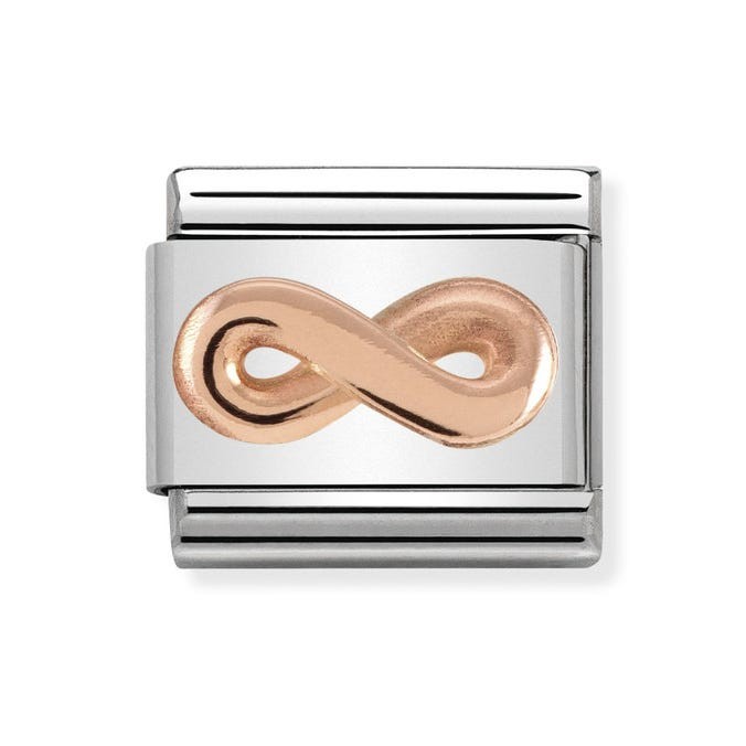 Charm in stainless steel for the Original Composable Classic bracelet with Infinity symbol in bonded rose gold. Made in Italy. For a true believer of everlasting love! The perfect gift for Valentine's Day or a Wedding Anniversary.