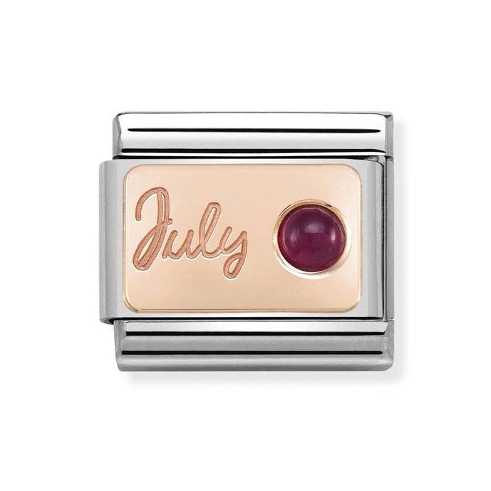Give an original Charm for the Classic Composable bracelet in stainless steel, bonded rose gold and Ruby, the perfect gift for someone with a July Birthday. An original gift that's entirely Made in Italy.