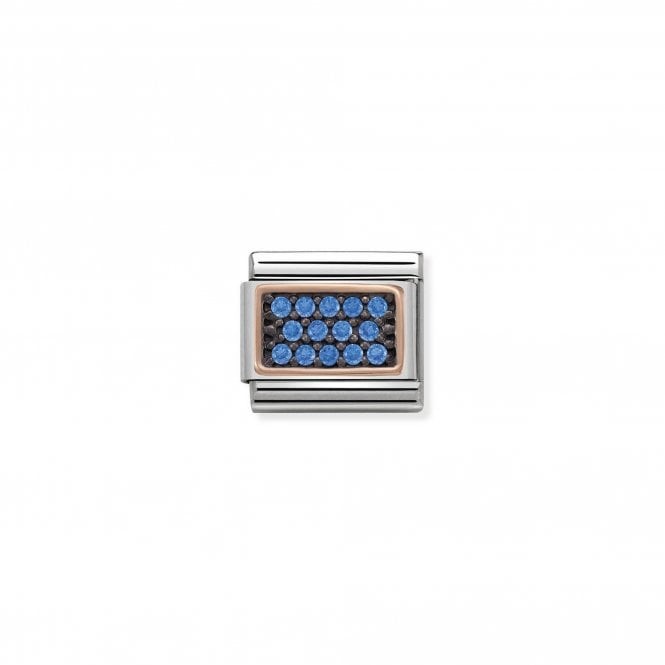 Original Nomination Charm in stainless steel with details in 9ct rose gold and light blue Swarovski Zirconia for the Composable bracelet. Made in Italy. This Charm with light blue gemstones is a symbol of liberty and independence.