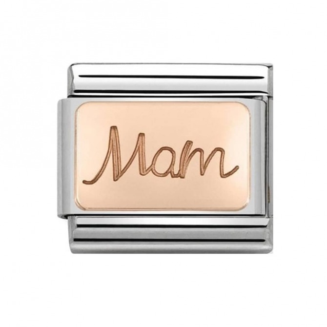 Original Charm for Nomination's Composable Classic bracelet in stainless steel and 9K rose gold with “Mam” engraved. Made in Italy. Nobody knows you better than Mam does! The perfect Mother's Day gift.