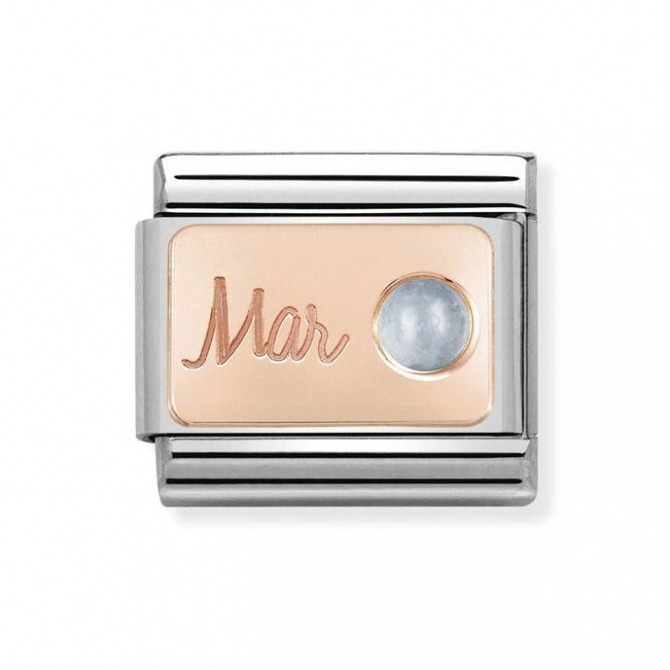 Give an original Charm for the Classic Composable bracelet in stainless steel, bonded rose gold and light blue Aquamarine, the perfect gift for someone with a March Birthday. An original gift that's entirely Made in Italy.