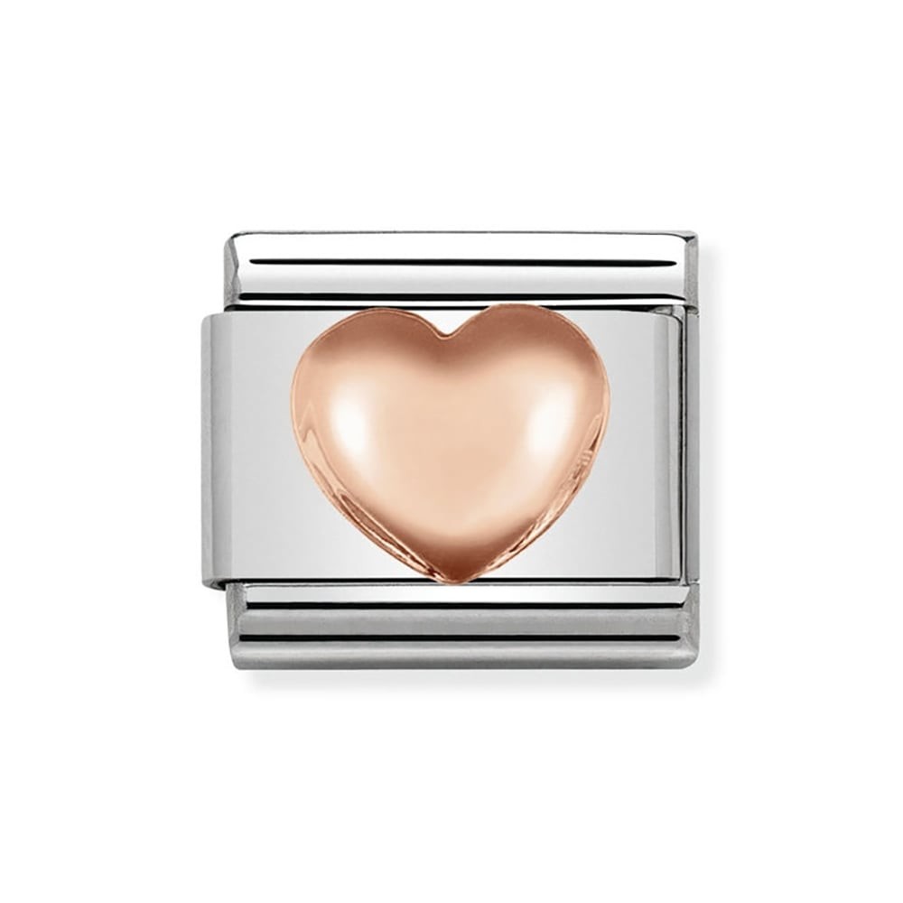 Original Charm in stainless steel and bonded rose gold for Nomination's Composable Classic Bracelet with Heart symbol. Made in Italy. The perfect gift to celebrate your love on Valentine's Day or a Wedding Anniversary.