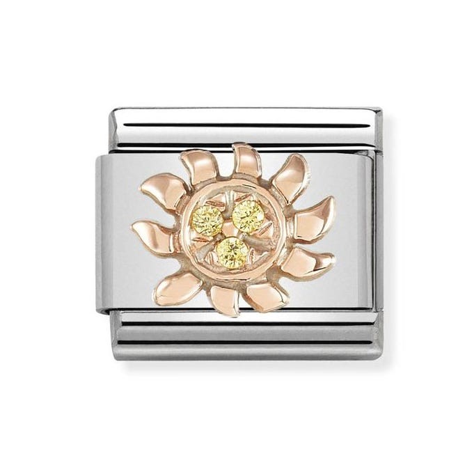 Original link for bracelet with Sun with Yellow Cubic Zirconia symbol in 9K rose gold. Made in Italy. The perfect link for those who always see the sunny side of life.