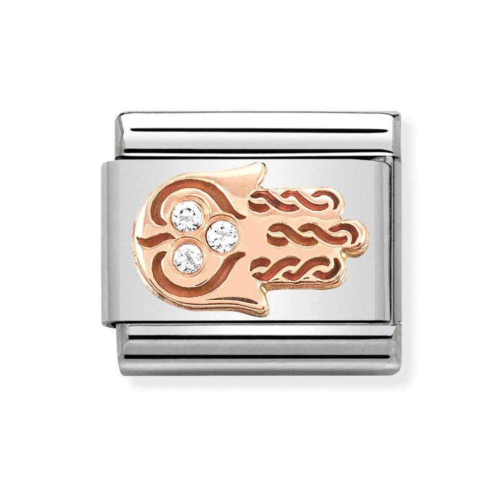 Original Nomination Link for Composable Classic Bracelets in Stainless steel with Hand of Fatima in bonded rose gold with Cubic Zirconia. Made in Italy. The perfect Link to serve as a reminder of the Spirituality that guides you.