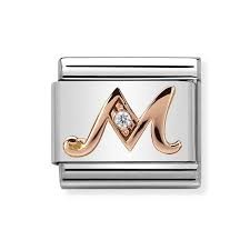 Original Charm for the Composable Classic bracelet with the Letter M in stainless steel, bonded rose gold and white Cubic Zirconia. Every letter of the alphabet is available. Made in Italy. Live each day as if it were your last... Make sure you don't forget important birthdays. This Charm with the Letter M makes the perfect original gift!