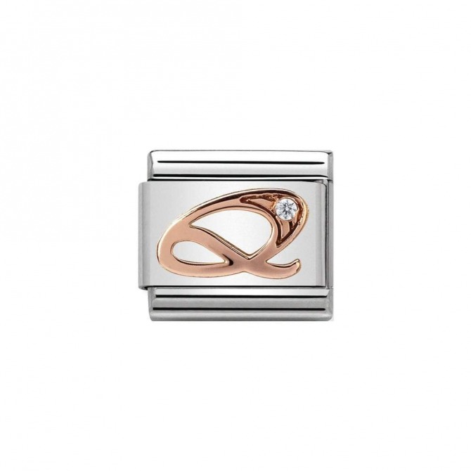 Original Charm for the Composable Classic bracelet with the Letter Q in stainless steel, bonded rose gold and white Cubic Zirconia. Every letter of the alphabet is available. Made in Italy. The letters of the alphabet: a Nomination must-have!