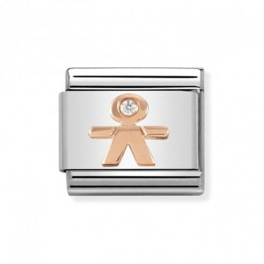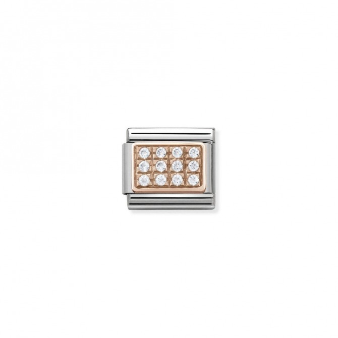 Original Charm in stainless steel and bonded rose gold for Nomination's Classic Composable Bracelet with white Cubic Zirconia. Made in Italy. Shine bright and show your sophisticated style!