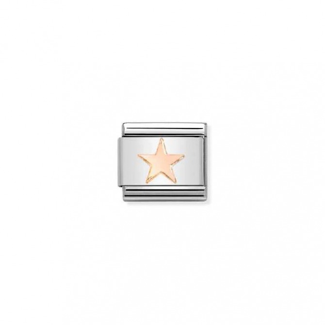 Original Nomination Classic Link in stainless steel and rose gold with Star symbol. Made in Italy. The new edition of the Composable Rose Gold Collection has a vast array of Links with symbols: animals, good fortune and positivity - Choose your favourites.