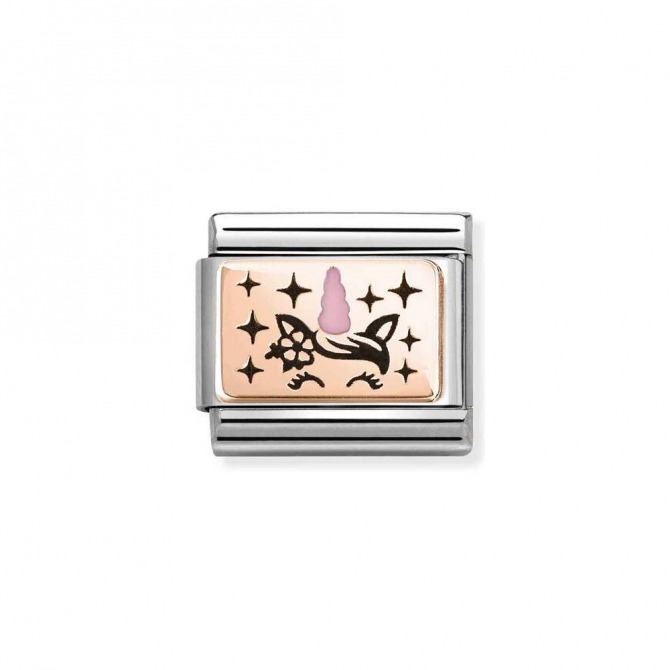 Original Nomination Link for Composable Classic Bracelets in stainless steel and 9ctr rose gold with coloured enamel Unicorn symbol. Made in Italy. Let your imagination run wild when you add this Link to your bracelet!