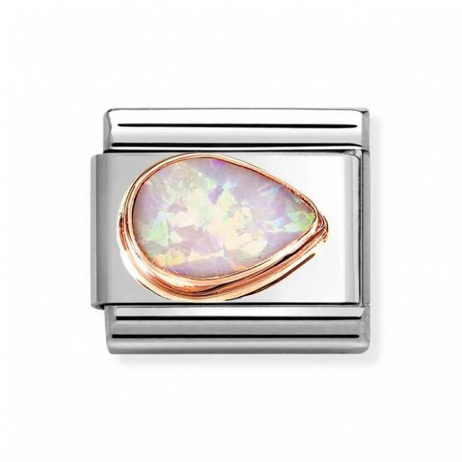Original Nomination Classic Link in stainless steel and 9K rose gold with Pink Opal Drop, Right. You can also pair it with the matching Left Drop Link. Made in Italy. Gift this brilliant Link, or a pair of them, to someone special!