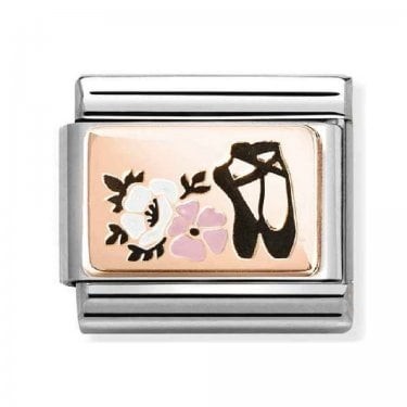 Link for Original Composable Classic Bracelet in Stainless Steel and Ballet shoes symbol in bonded 9ct rose gold with black, white and pink enamel. Made in Italy. The perfect Link to give to the aspire Étoile in your life - elegance and magic all in one Link!