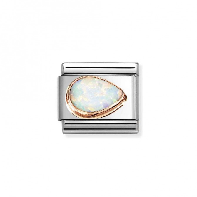 Original Nomination Classic Link in stainless steel and 9K rose gold with White Opal Drop, Right. You can also pair it with the matching Left Drop Link. Made in Italy. Gift this brilliant Link, or a pair of them, to someone special!