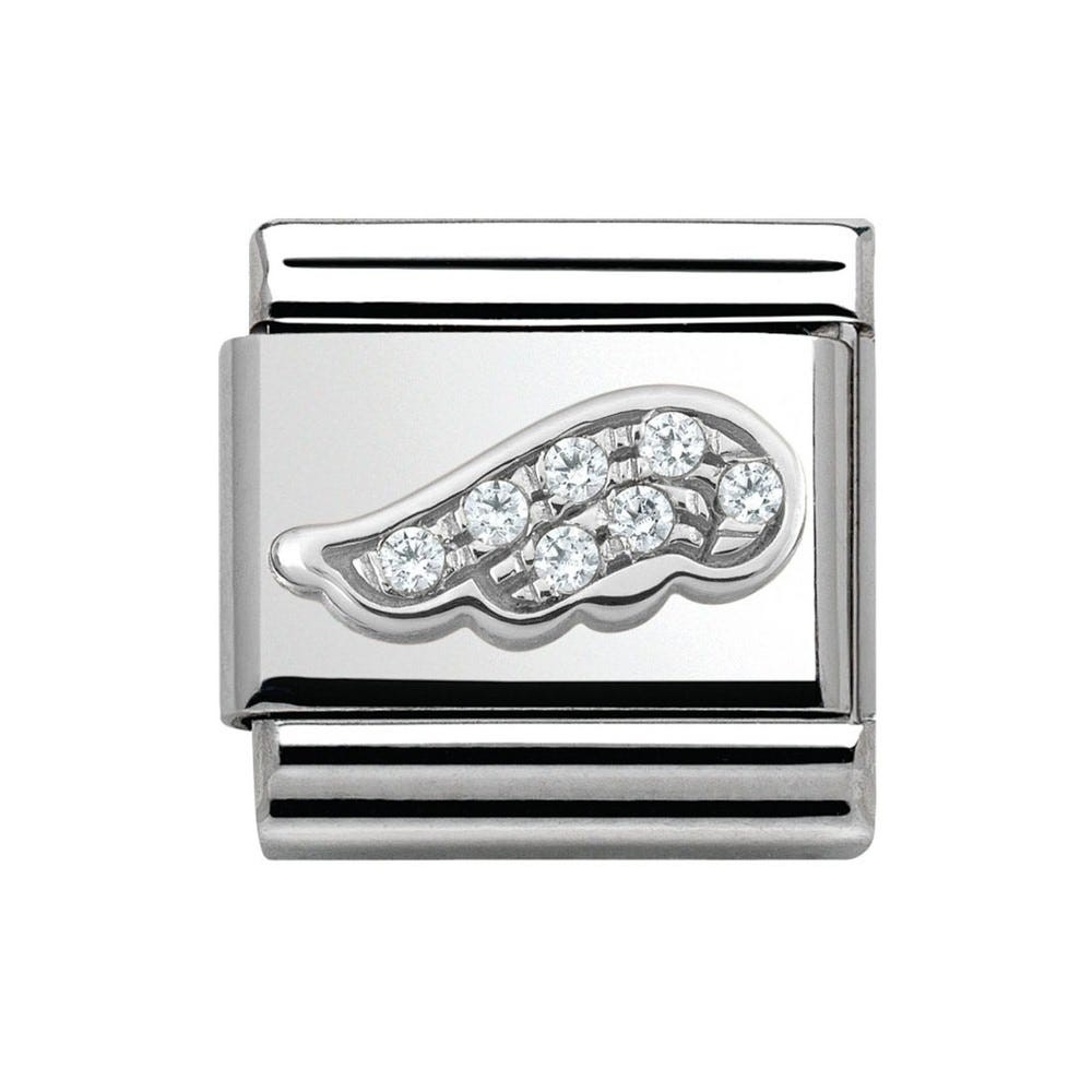 Original Charm for Nomination's Composable Classic Bracelet with white Wing in stainless steel, sterling silver and Cubic Zirconia. Made in Italy. Choose your favourite symbol to create your sweet message.