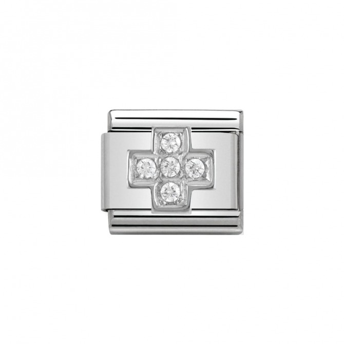 Original Charm for Nomination's Composable Classic Bracelet with Cross symbol in stainless steel, sterling silver and white Cubic Zirconia. Made in Italy. Choose your favourite symbol and tell your story with Composable!