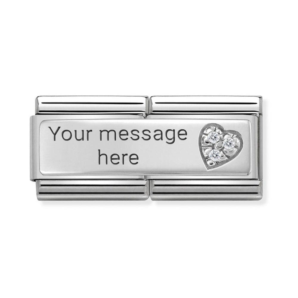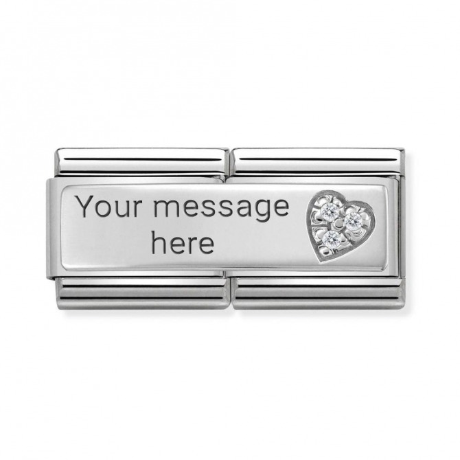 Original tile for Nomination Classic Composable bracelet with double link in Sterling Silver and Cubic Zirconia with heart. Made in Italy. The link to personalize and give for a Wedding Anniversary or Valentine's Day gift.