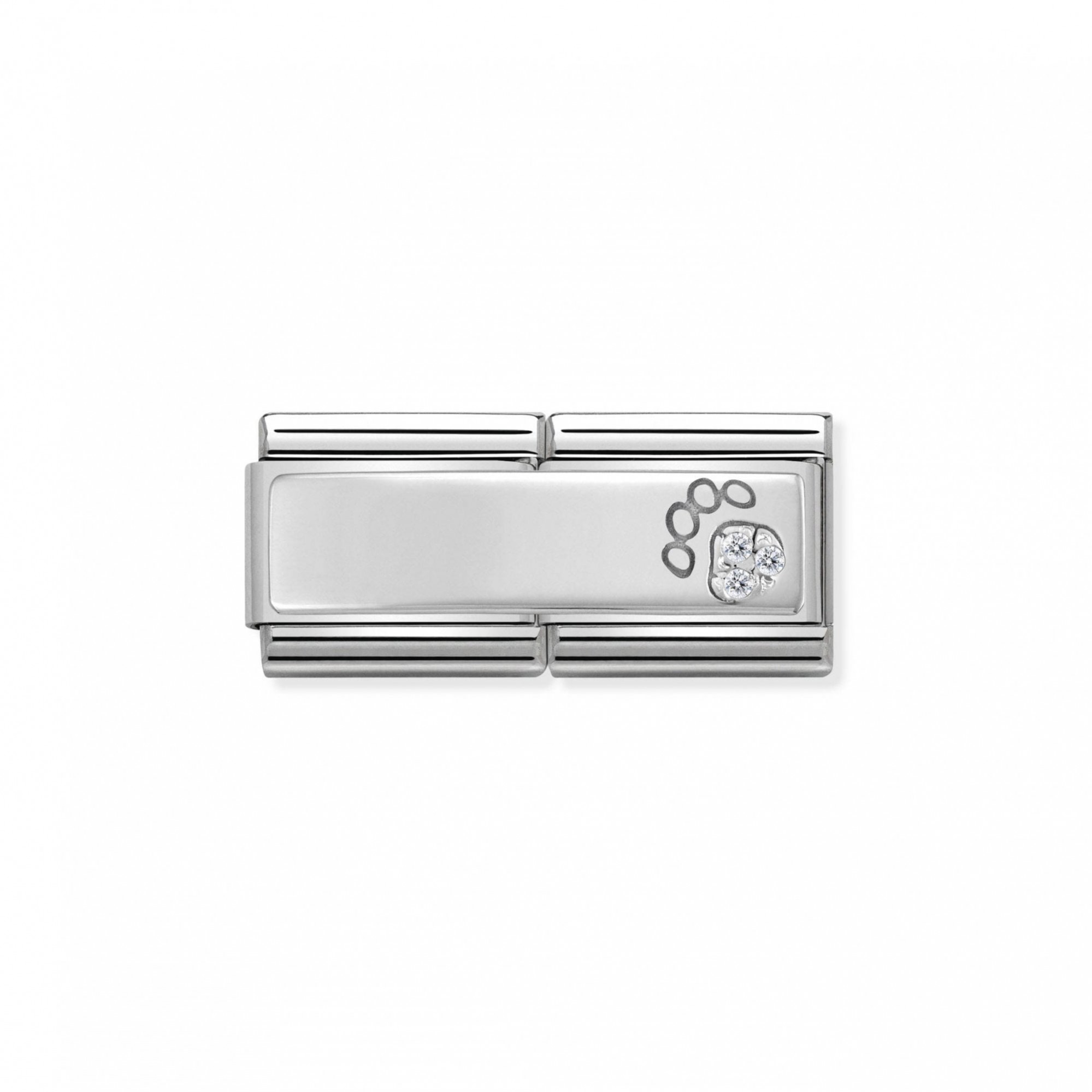 Original tile for Nomination Classic Composable bracelet with double link in Sterling Silver and Cubic Zirconia with horseshoe. Made in Italy. Inscribe the name of your faithful four-legged friend on this charm.