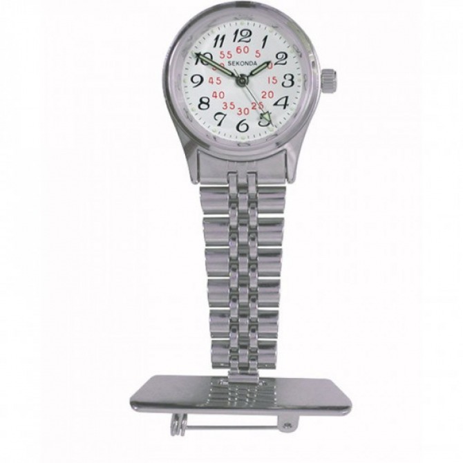 This classic nurses watch features steel links which hold an easy to read white dial and hands. The time is displayed using a 12hr format and suitable for wearing with scrubs.