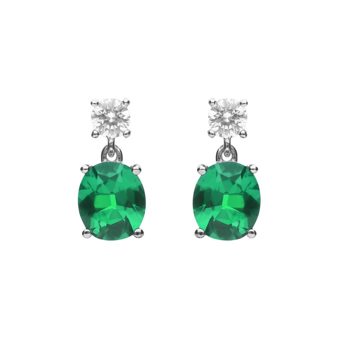 Silver & Oval Green Zirconia Drop Earrings